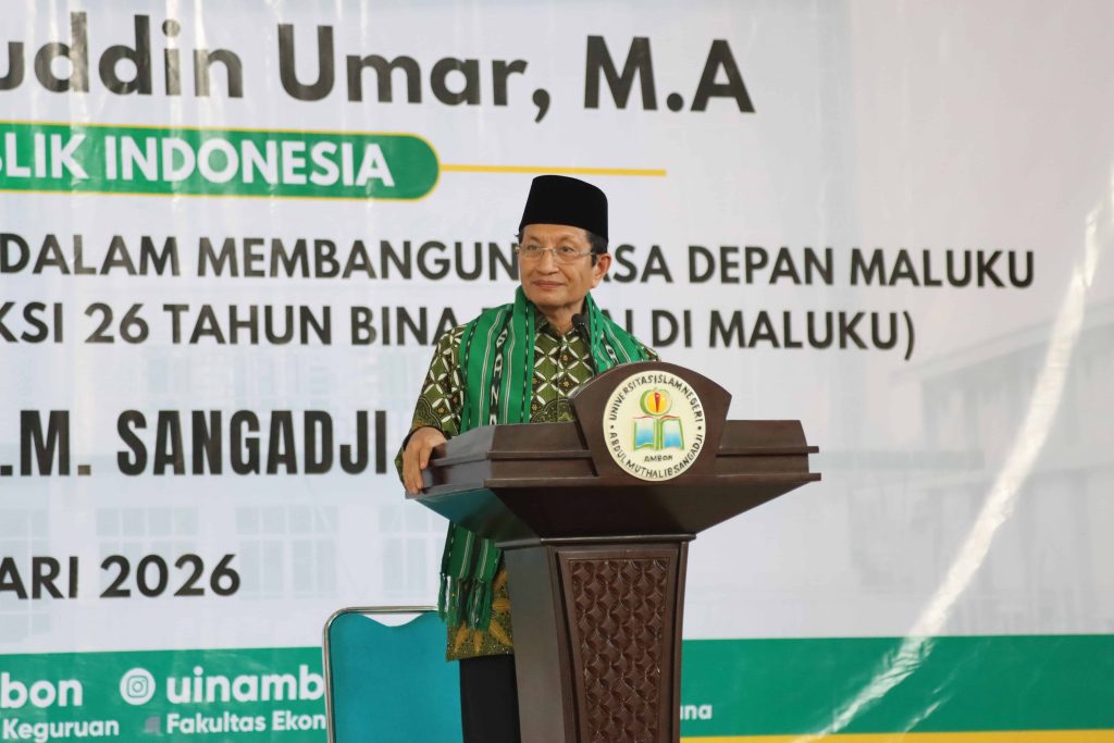 UIN AMBON, — Menteri Agama RI, Prof. Dr. KH. Nasaruddin Umar, M.A meresmikan alih bentuk Institut Agama Islam Negeri (IAIN) Ambon menjadi Universitas Islam Negeri (UIN) Abdul Muthalib Sangadji Ambon, Jumat, 16 Januari 2026.